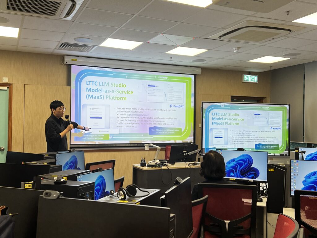 Subsequently, LTTC colleagues showcased the core services of the LLM Studio at the Artificial Intelligence Education Lab. Hands-on demonstrations of the Model-as-a-Service (MaaS) platform were provided, along with highlights of workshops that leverage generative AI (e.g., DeepSeek) to promote innovation and productivity.