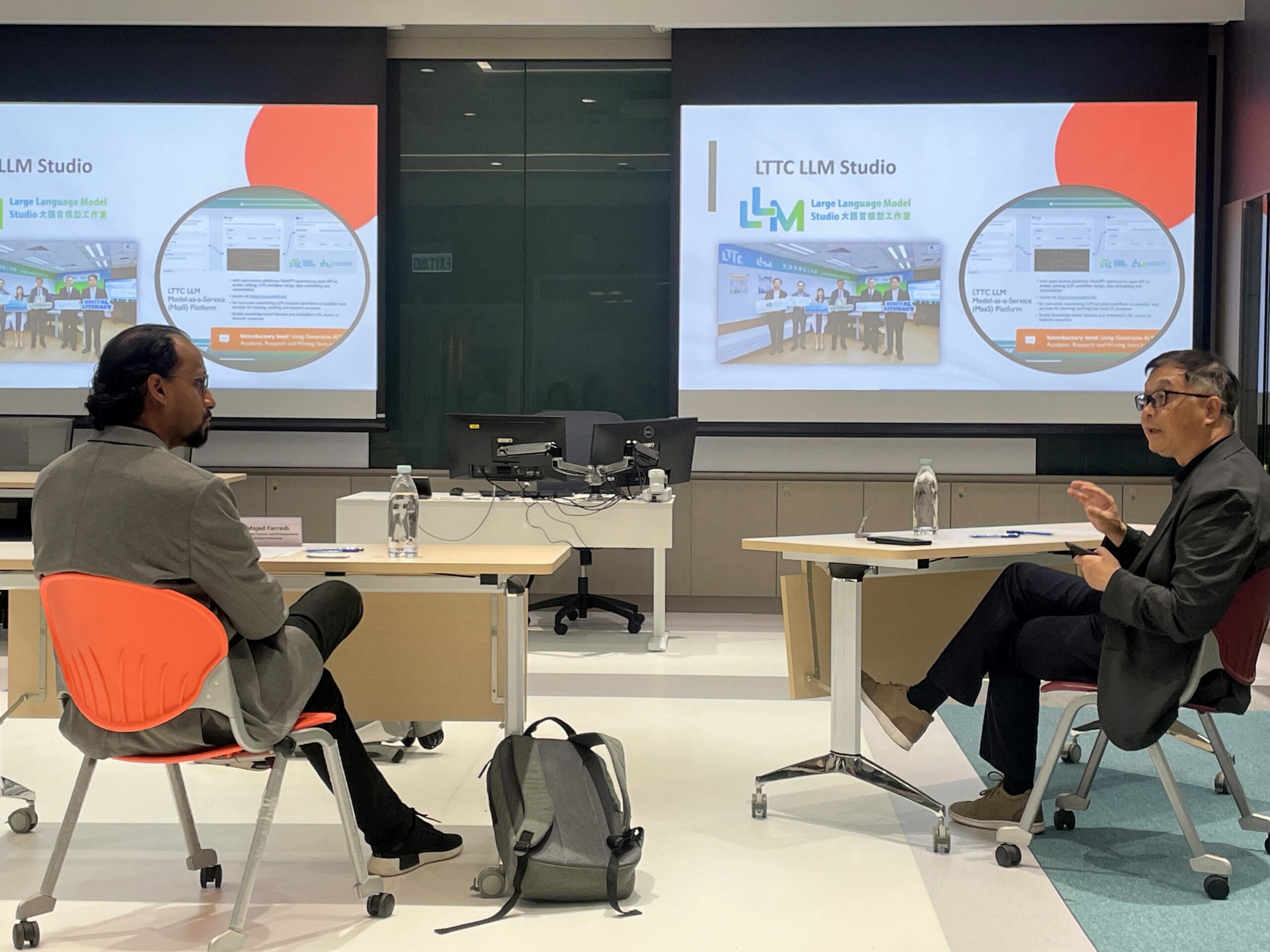 Chair Professor Xu Guandong, Director of LTTC, warmly welcomed Dr Majed Farrash, and shared insights on large language models, multimodal learning analytics, and AI-powered adaptive learning systems. Professor Xu also emphasised the current endeavours of LTTC, including the development of AI-powered tools, digital competency frameworks, immersive learning environments, staff professional development, the revamp of the peer support of teaching scheme as well as the Artificial Intelligence Education and Research Alliance (AIREA) forums and competition.